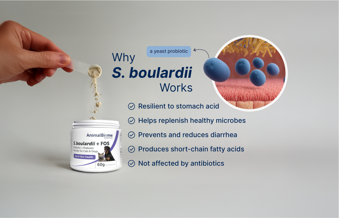A clinically proven yeast probiotic that reduces diarrhea duration and supports gut stability during stress or antibiotic use.