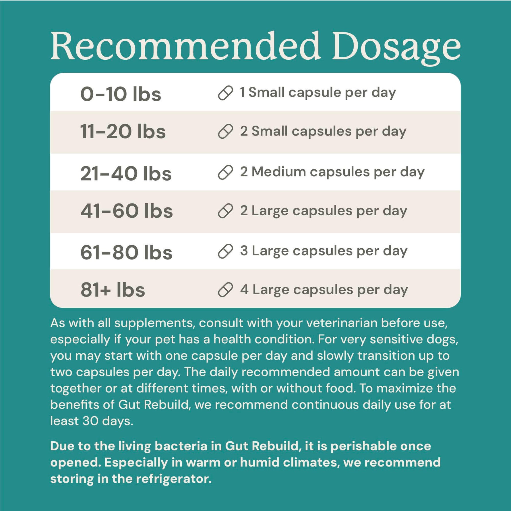 • 41–60 lbs: 2 capsules/day