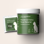 Our powdered feline fecal material is sourced from extensively-screened healthy cat donors and is used for fecal transplants via enema by veterinarians.
